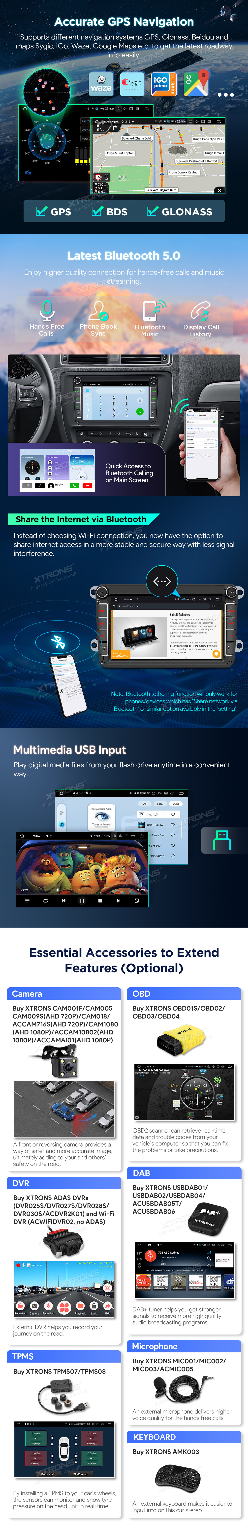 * Optionale Funktionen (zusätzliches Zubehör erforderlich): Kamera, OBD, DAB+, DVR, TPMS, Mikrofon und Tastatur