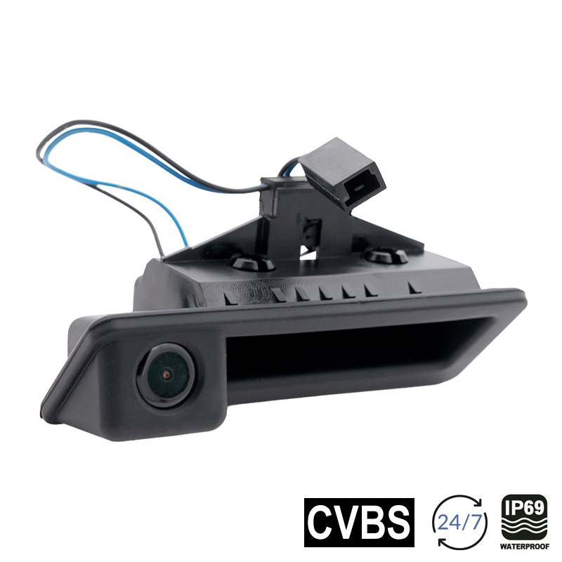 HINWEIS ZUR BESTELLUNG Überprüfen Sie unbedingt vor der Bestellung anhand der u.a. Abmessungen ob die Kamera wirklich in ihr Fahrzeug passt. Die Kamera wird für ihre Bestellung individuell konfektioniert und kann deshalb nicht retourniert werden. Prüfen Sie außerdem immer in der Kompatibilitätsliste ob diese Kamera mit ihrem Fahrzeug kompatibel ist. Fahrzeugspezifischer Austausch-Hecktürgriff mit integrierter Rückfahrkamera und abschaltbaren Abstandslinien. Einfache Montage durch Austausch des Werks-Hecktürgriffs. Systemkabelsatz in ausreichender Länge und mit automotiven Steckverbindungen. Dank Stecker mit geringem Durchmesser lässt sich das Kabel einfacher verlegen. Passend für: – BMW 1er (E82/88), – BMW 3er (E90/E90LCI/91/91LCI/92/92LCI/93/93LCI) – BMW 5er (E60/60LCI/61/61LCI), – BMW X1 (E84), – BMW X5 (E70/70LCI), – BMW X6 (E71/72Hybrid) und Fahrzeuge mit Teilenummer 5124 7118158 Abmessungen – Gesamt L/B/T 109.5x46x61mm – Grifffront L/B 109.5x38mm – Einbauöffnung L/B 103x31mm Produkteigenschaften – Sensor-Typ 1/3″ CMOS PC3089 – Bildsystem NTSC – Auflösung 720x480px – Gespiegeltes Bild (fest) – Abstandslinien abschaltbar – Winkel horizontal 130°, vertikal 90°, diagonal 170° – IP68 – Kamerakabel 1.5m mit 4-Pin System Systemkabelbuchse (Durchmesser 5.9mm) – Systemverlängerungskabel 4-Pin, 8,1m mit Ader für Signaldurchleitung – Systemanschlusskabel 4-Pin, 0,4m mit Cinch Stecker, Stromversorgung, Sicherung – Gewicht inkl. Kabel ca. 238g – Versorgungsspannung 6-16V – Stromaufnahme 0.5W 40mAh – Sicherung 2A