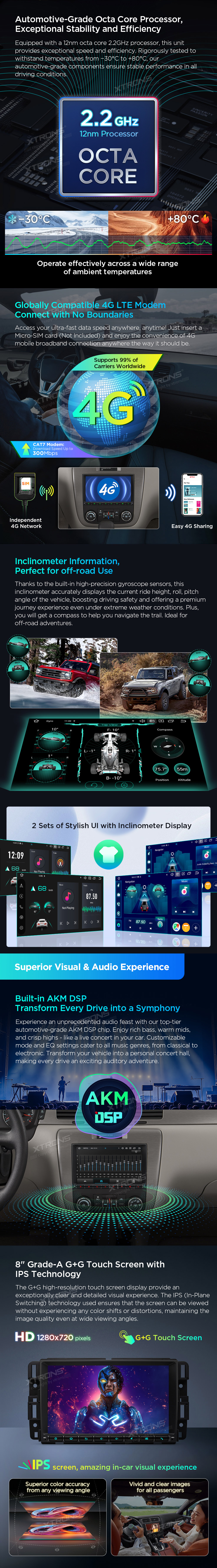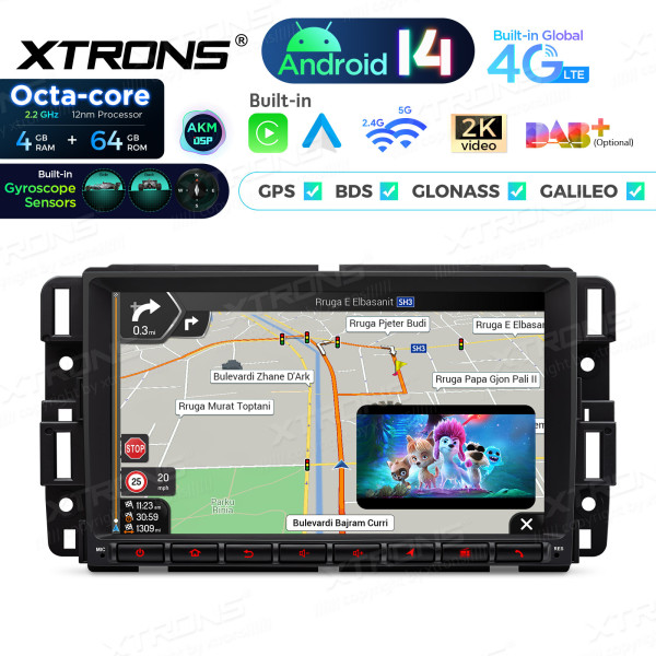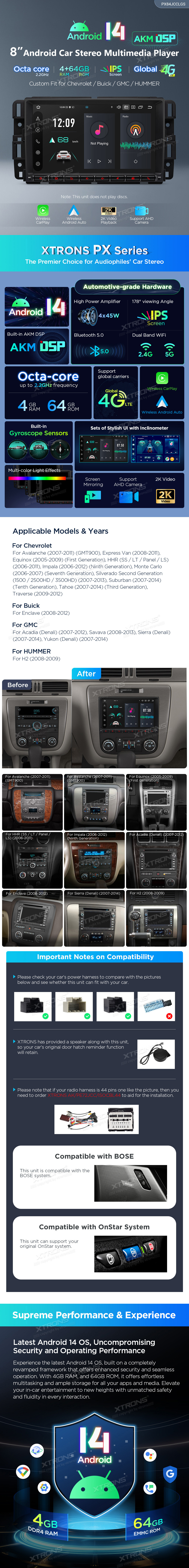 PX84JCCLGS 8-Zoll-Autoradio mit 4+64 GB Octa-Core-Prozessor, Android 14, AKM DSP, globalem 4G und Gyroskopen für Chevrolet/Buick/GMC/HUMMER