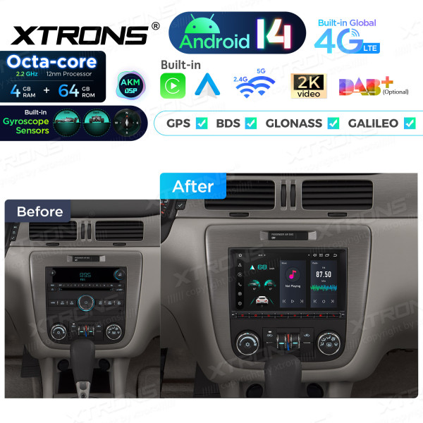 8-Zoll-Autoradio mit 4+64 GB Octa-Core-Prozessor, Android 14, AKM DSP, globalem 4G und Gyroskopen für Chevrolet/Buick/GMC/HUMMER