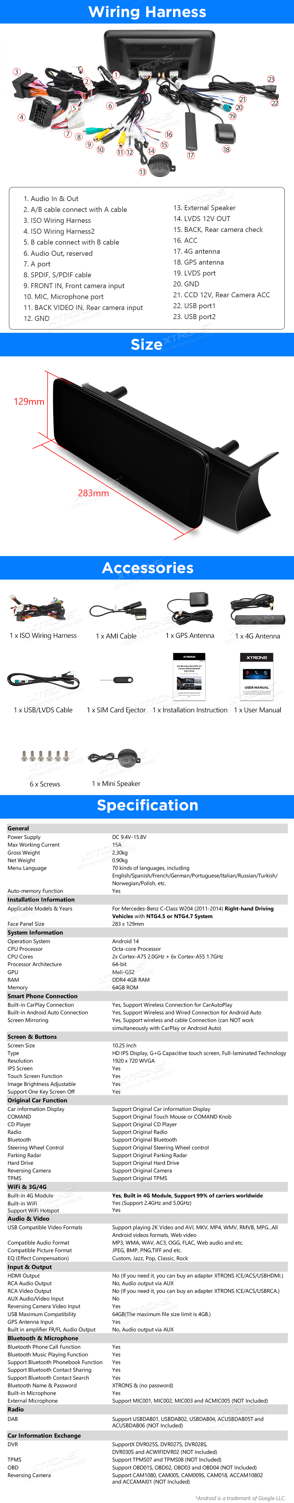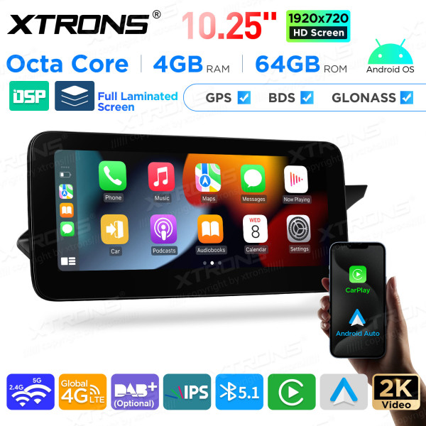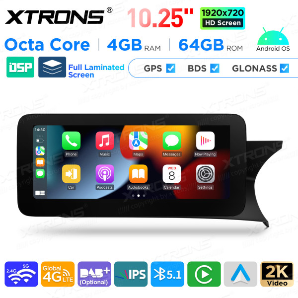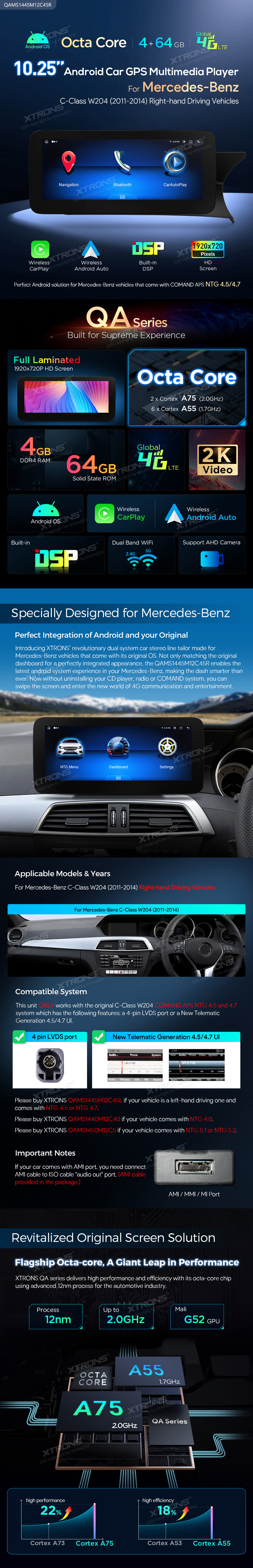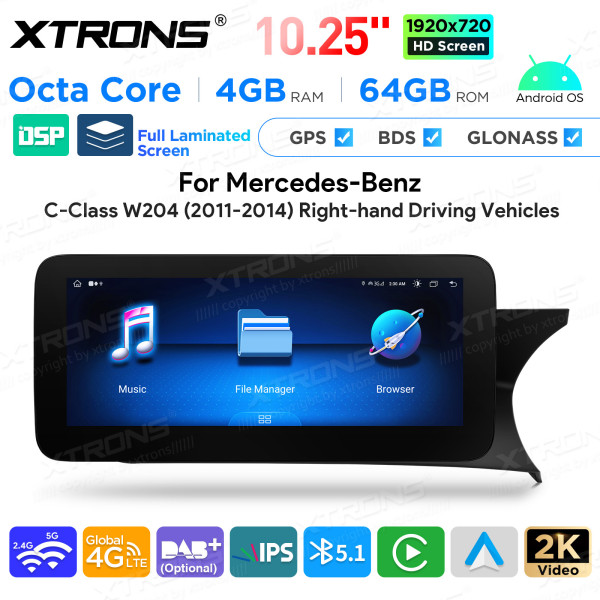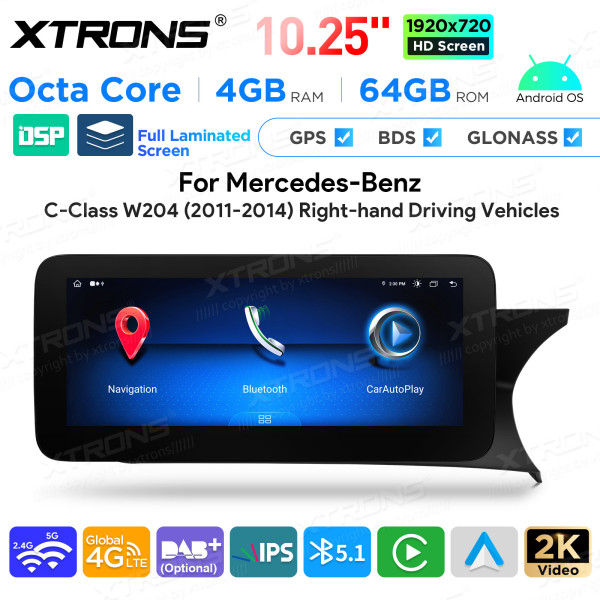 QAMS1445M12C45R 10,25 Zoll Android Octa-Core 4GB + 64GB Autoradio mit GPS und Multimedia-Player für Mercedes-Benz C-Klasse W204 (2011–2014) Rechtslenker