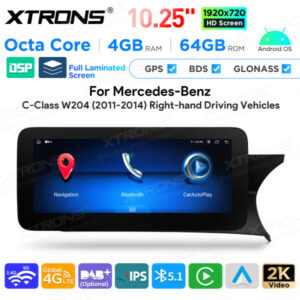 10,25 Zoll Android Octa-Core 4GB + 64GB Autoradio mit GPS und Multimedia-Player für Mercedes-Benz C-Klasse W204 (2011–2014) Rechtslenker
