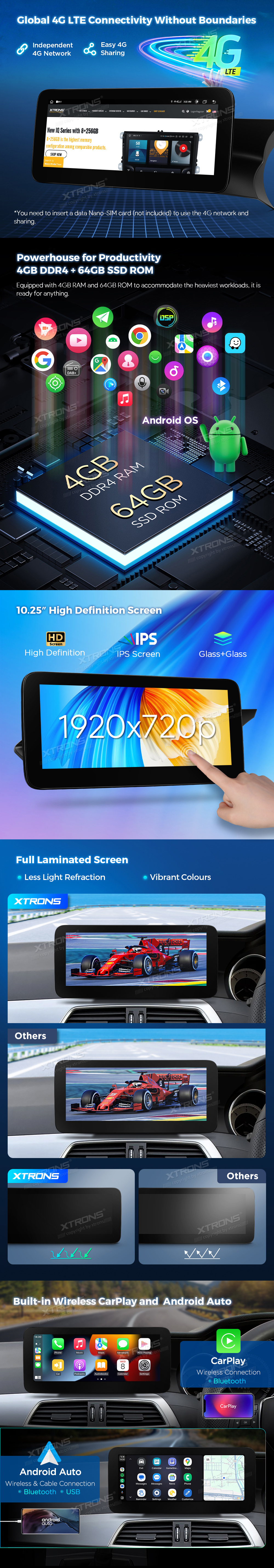 *10,25 Zoll 1920 x 720P HD IPS G+G Touchscreen