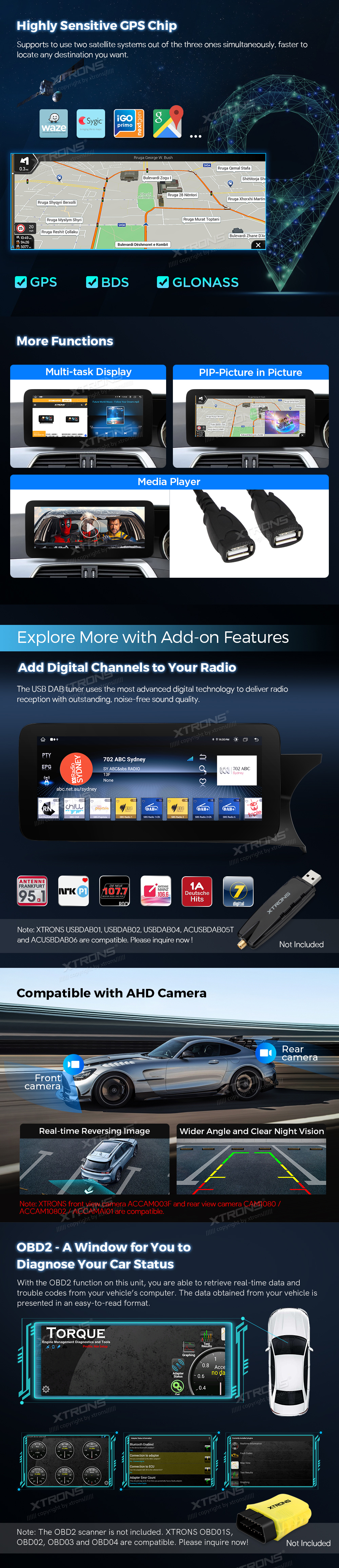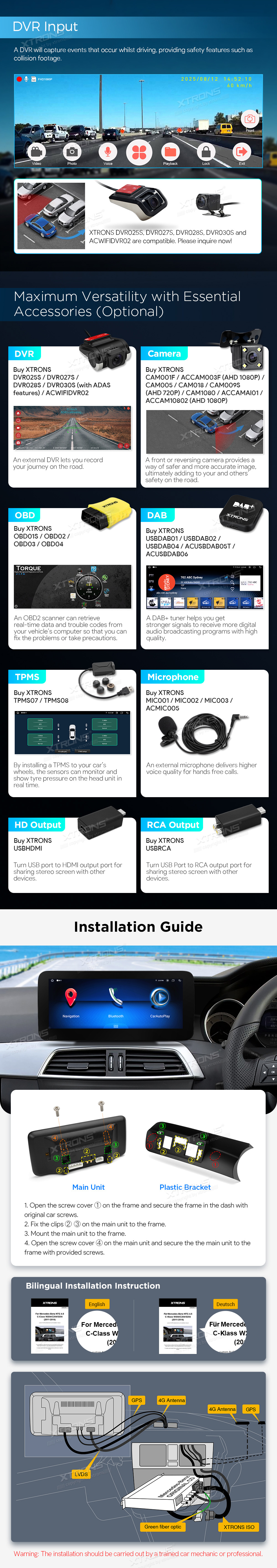 – DVR, Kamera, OBD, DAB, TPMS, Mikrofon, HD/RCA-Ausgang