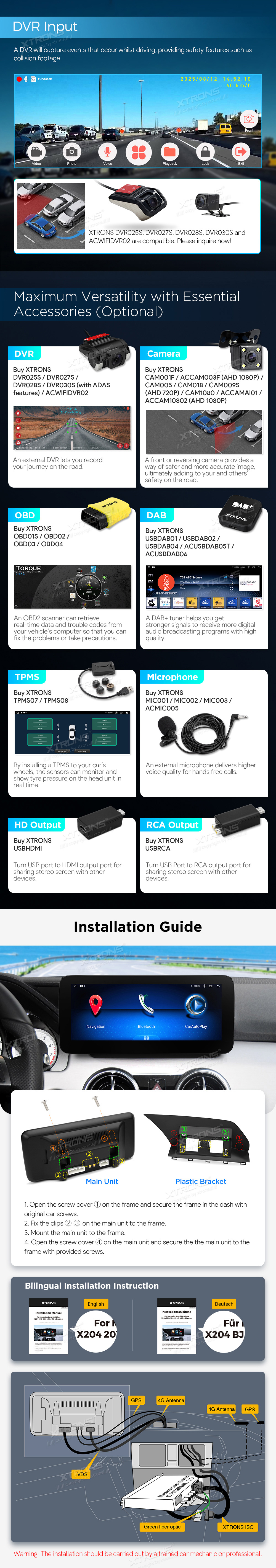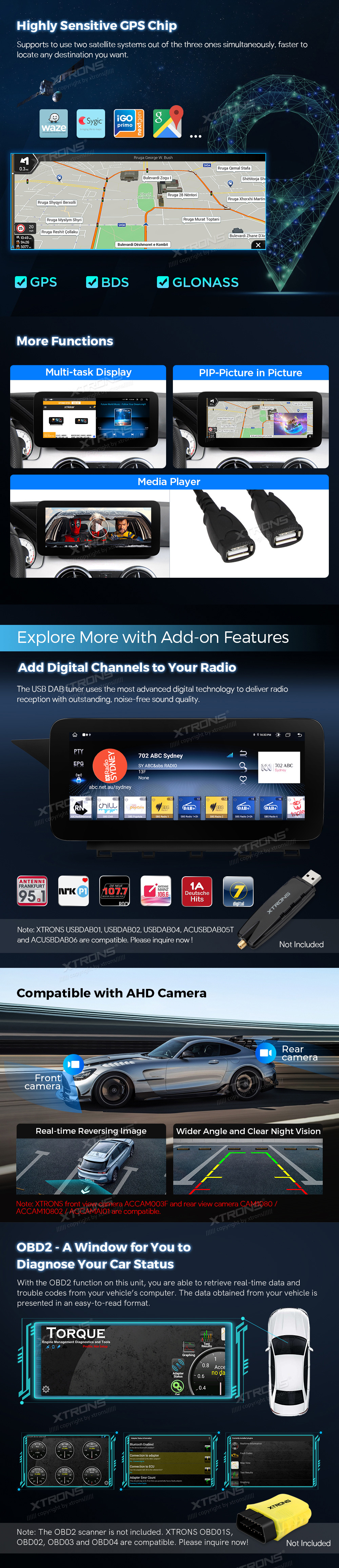 : DVR, Kamera, OBD, DAB, TPMS, Mikrofon, HD/RCA-Ausgang