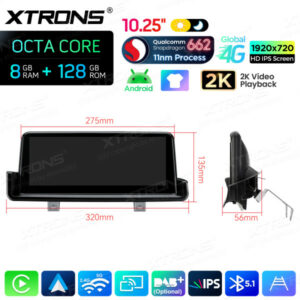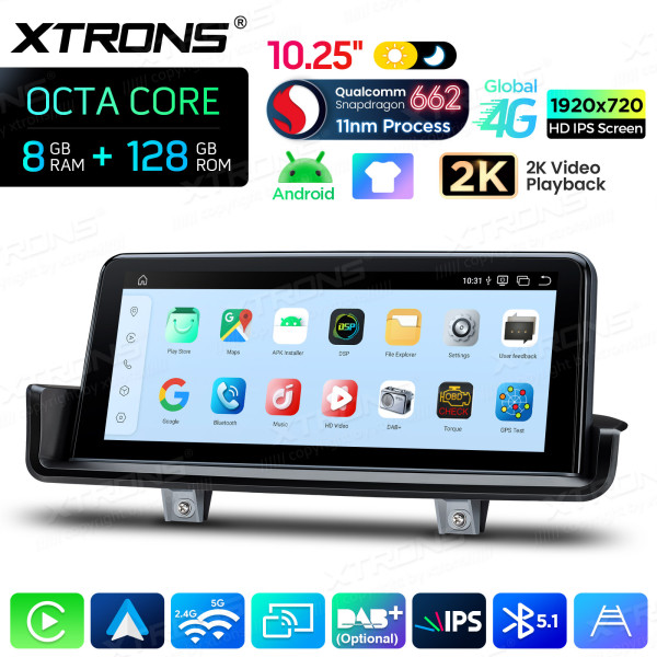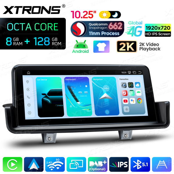 10,25 Zoll 8+128 GB Qualcomm Snapdragon 662 2K-Videowiedergabe Global 4G Android Autoradio für BMW 3er LHD ohne Originaldisplay