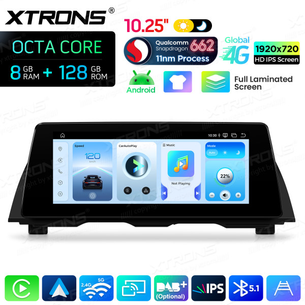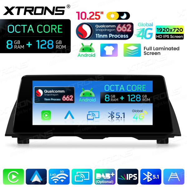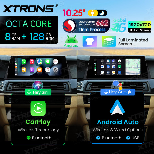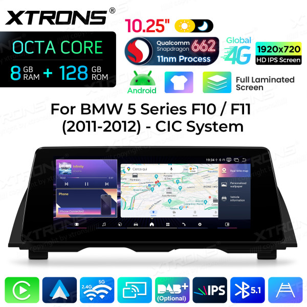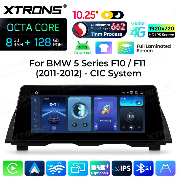 10,25 Zoll 8+128 GB Android Autoradio Qualcomm Snapdragon 662 Vollständig laminierter Bildschirm Global 4G für BMW 5er F10/F11 mit CIC-System