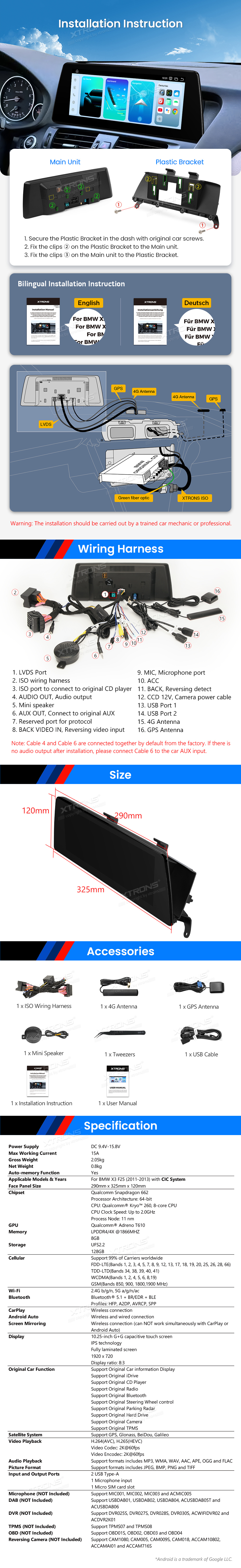 10,25 Zoll 8+128 GB Android Autoradio mit Qualcomm Snapdragon 662 Prozessor, volllaminiertem Bildschirm, globalem 4G-Netz für BMW X3 F25 mit CIC-System