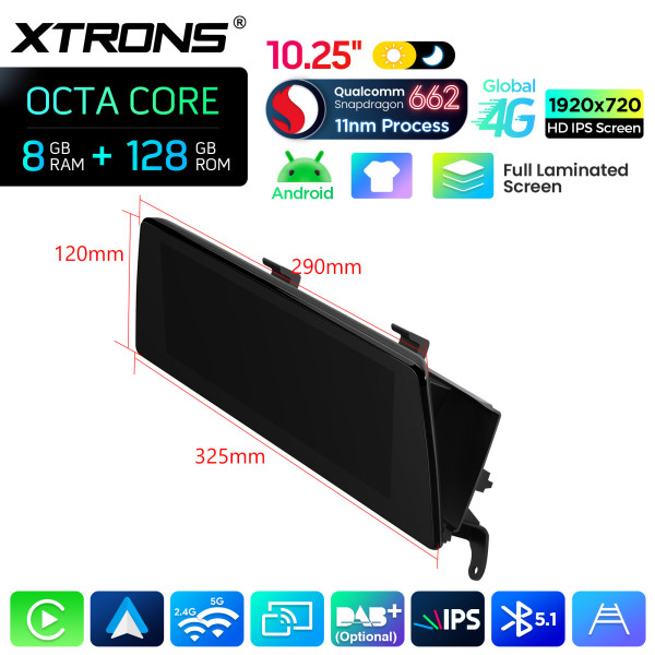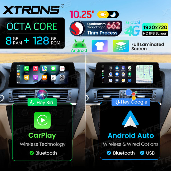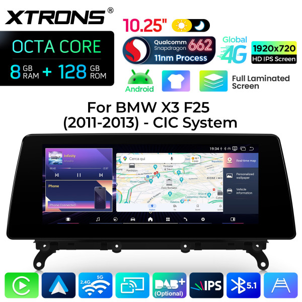 10,25 Zoll 8+128 GB Android Autoradio mit Qualcomm Snapdragon 662 Prozessor, volllaminiertem Bildschirm, globalem 4G-Netz für BMW X3 F25 mit CIC-System