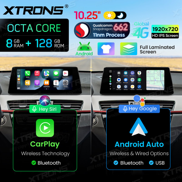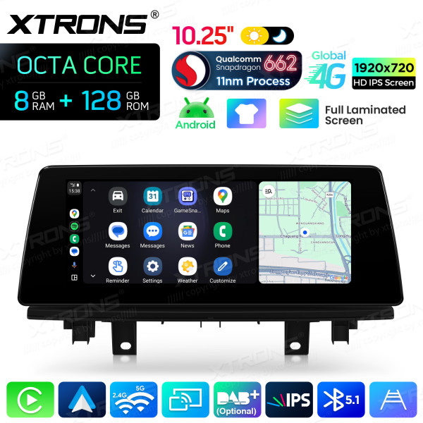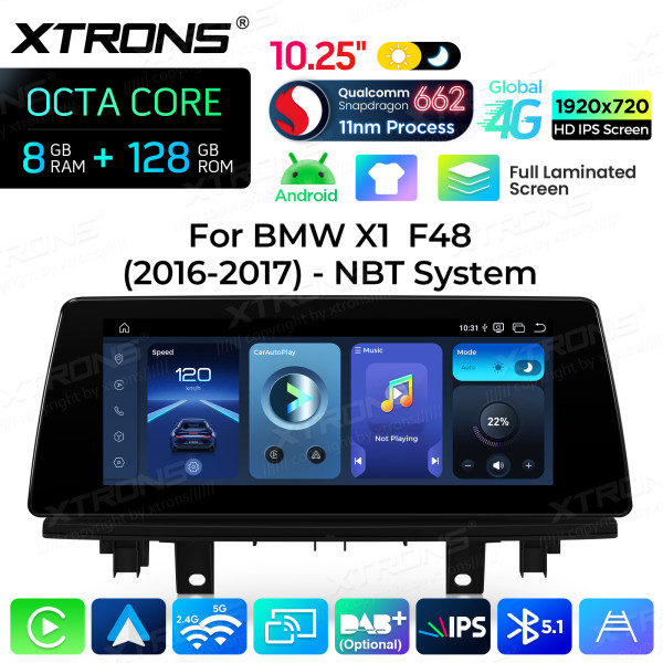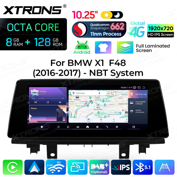 10,25 Zoll 8+128 GB Android Autoradio mit Qualcomm Snapdragon 662 Prozessor, volllaminiertem Bildschirm, globalem 4G-Netz für BMW X1 F48 mit NBT-System