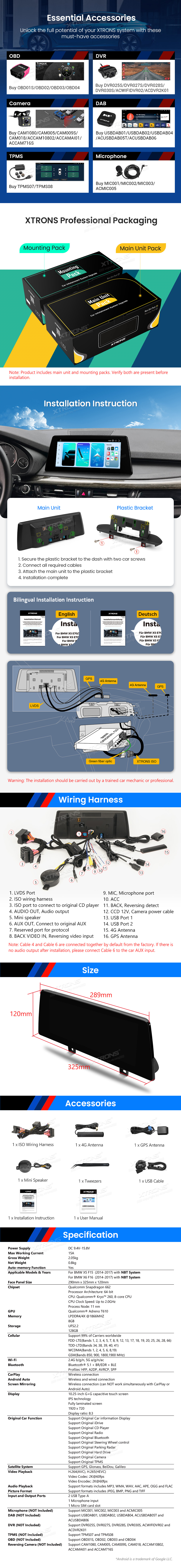 * Wichtiges Zubehör für erweiterte Funktionen, einschließlich Kamera, DAB, DVR, OBD und TPMS