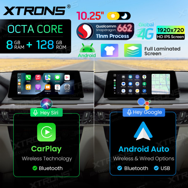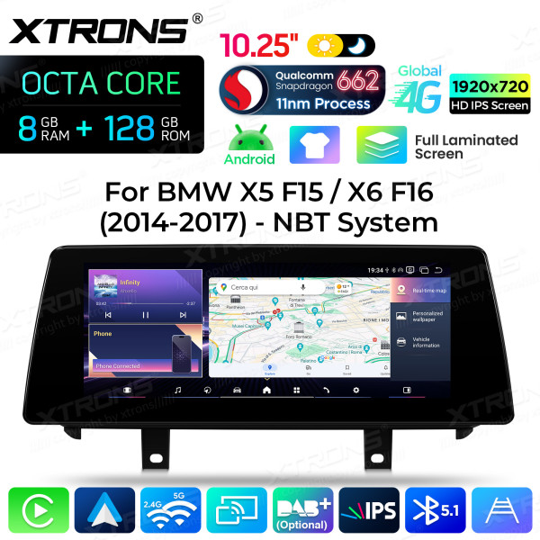 10,25 Zoll 8+128 GB Android Autoradio mit Qualcomm Snapdragon 662, volllaminiertem Bildschirm, globalem 4G für BMW X5 F15/X6 F16 mit NBT-System