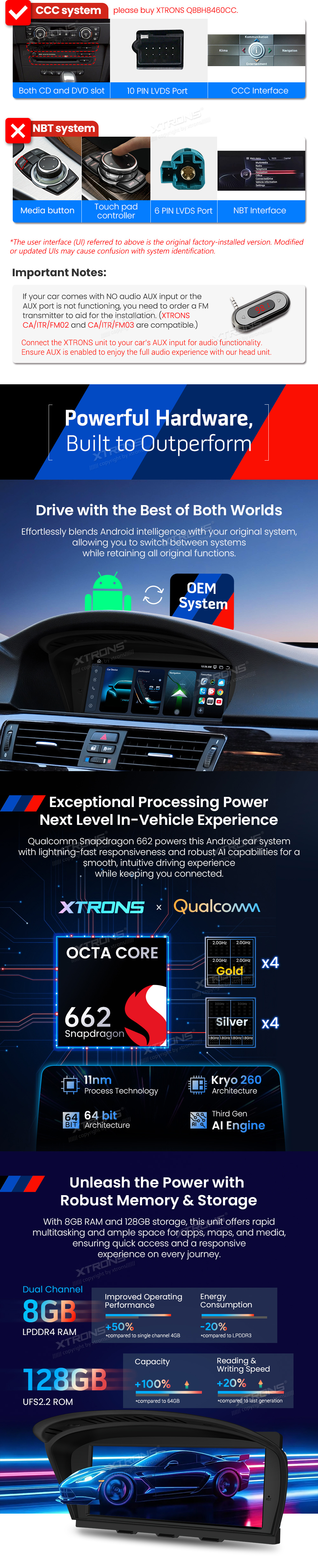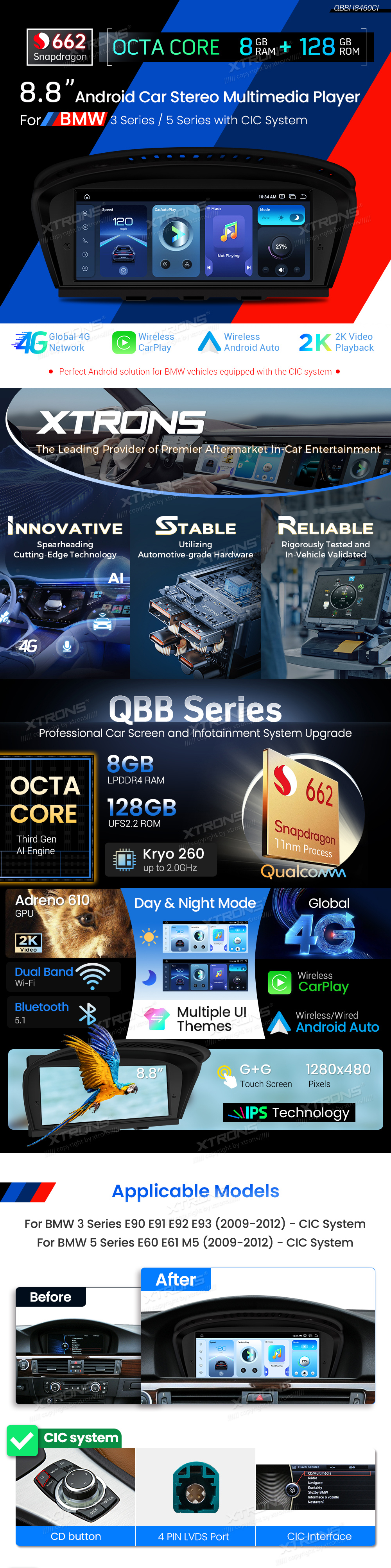 QBBH8460CI 8,8-Zoll-Android-Autoradio mit Qualcomm Snapdragon 662, globalem 4G, 2K-Videowiedergabe für BMW 3er/5er CIC-System