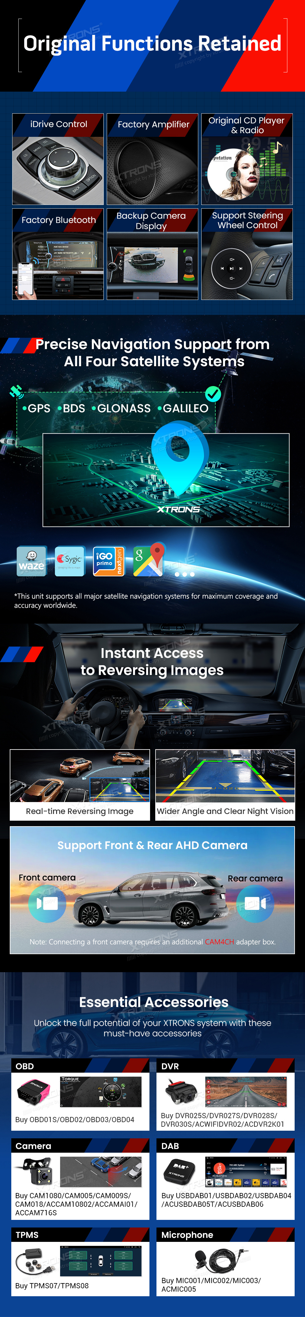 * Wichtiges Zubehör für erweiterte Funktionen, einschließlich Kamera, DAB, DVR, OBD und TPMS