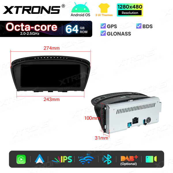 8,8 Zoll für BMW 3er/5er CIC Octa Core 64 GB IPS-Display, Tag- und Nachtmodus, Benutzeroberfläche, Android-Auto-GPS-Multimedia-Player