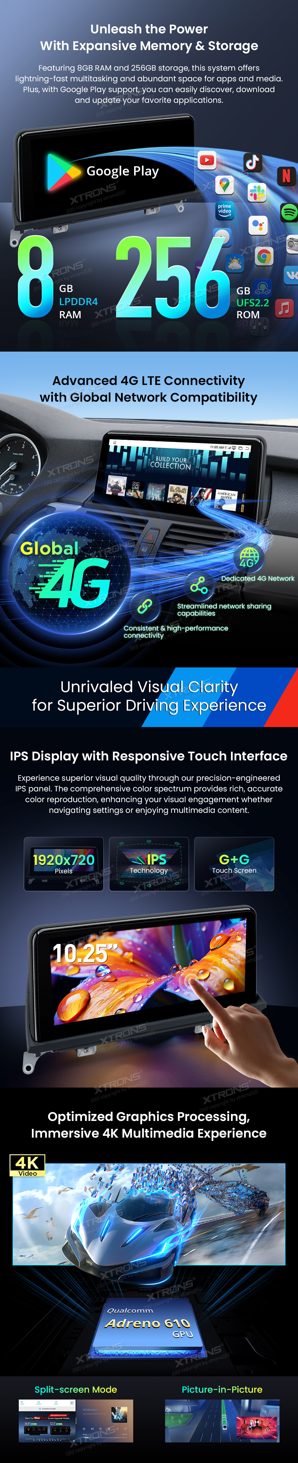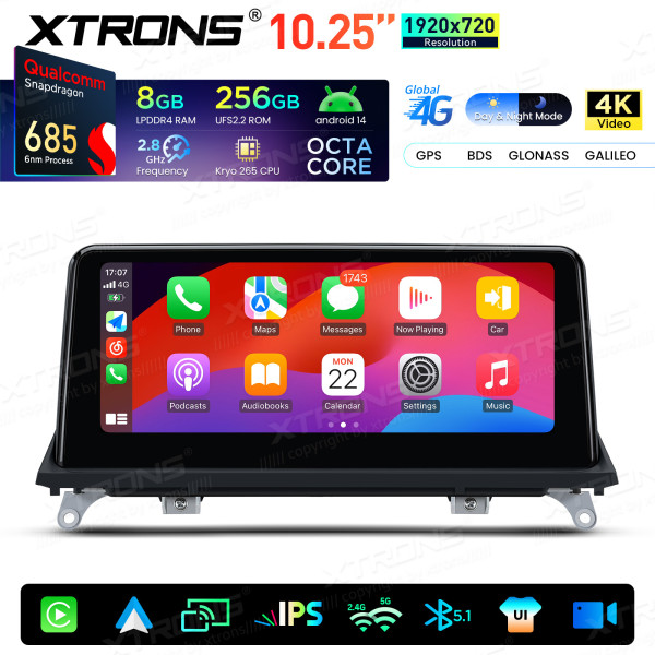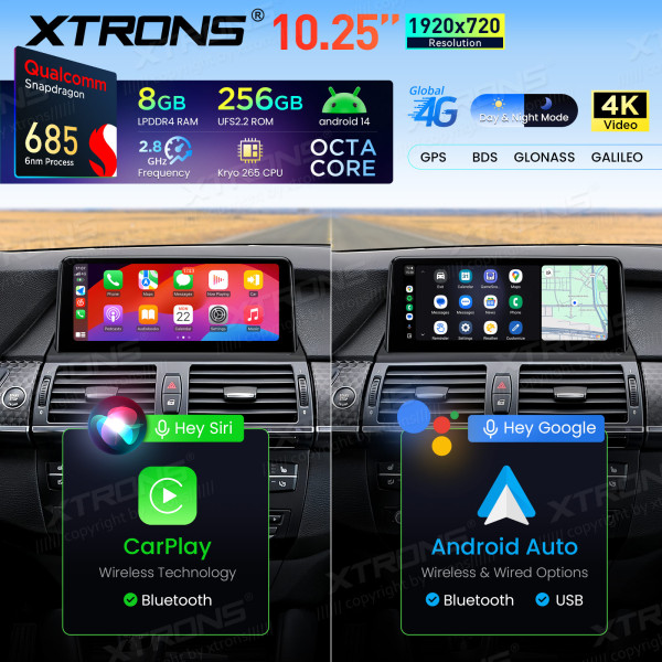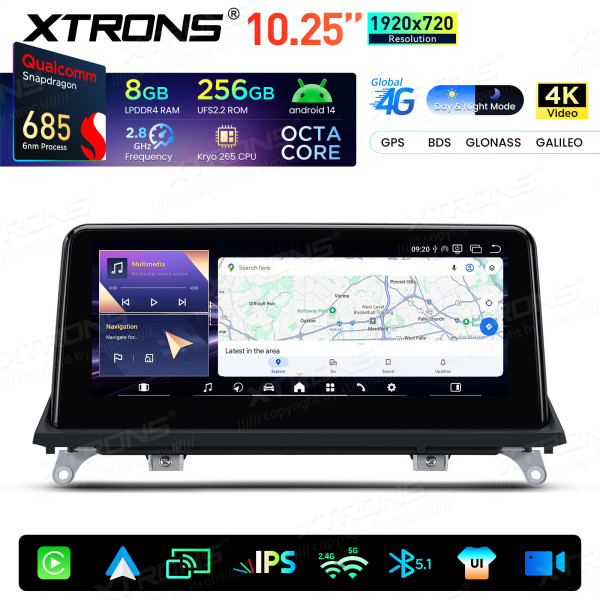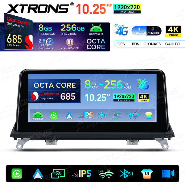 10,25 Zoll Qualcomm Snapdragon 685 8+256GB IPS-Bildschirm Android Auto-Infotainment-System Upgrade für BMW X5 E70/X6 E71 mit CCC-System