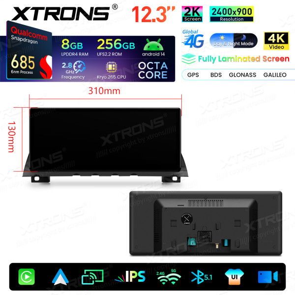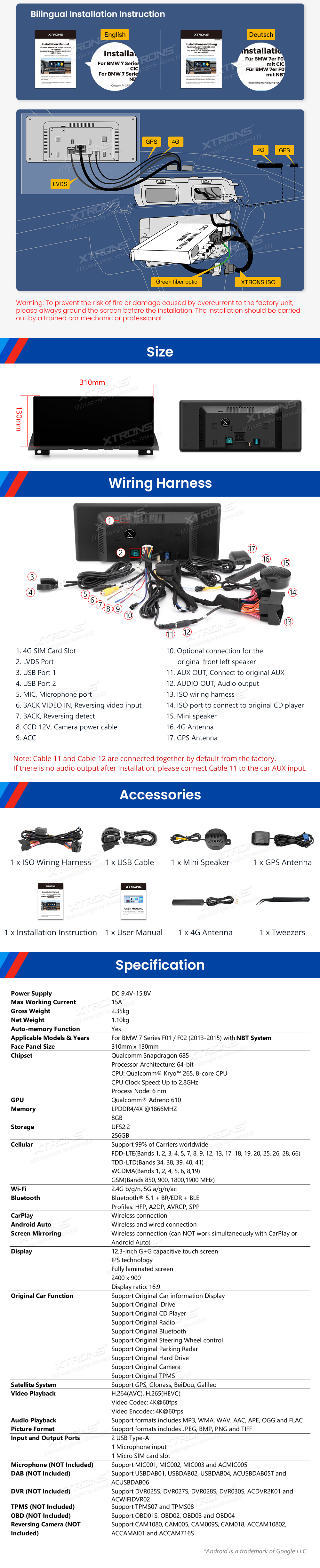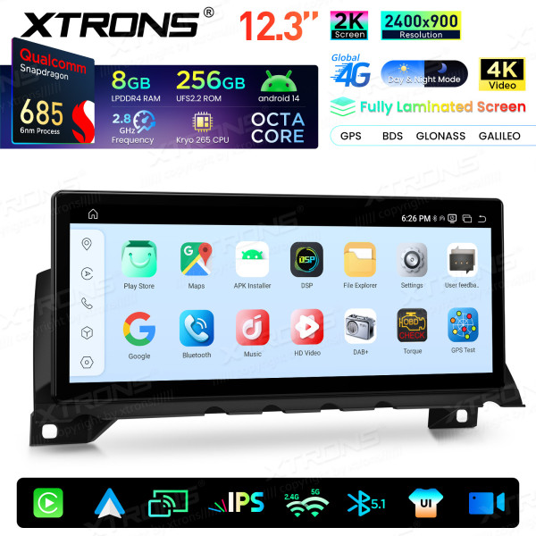 12,3 Zoll 2K-Bildschirm Qualcomm Snapdragon 685 8+256 GB Android-Autobildschirm-Upgrade für BMW 7er F01/F02 (2013–2015) NBT-System