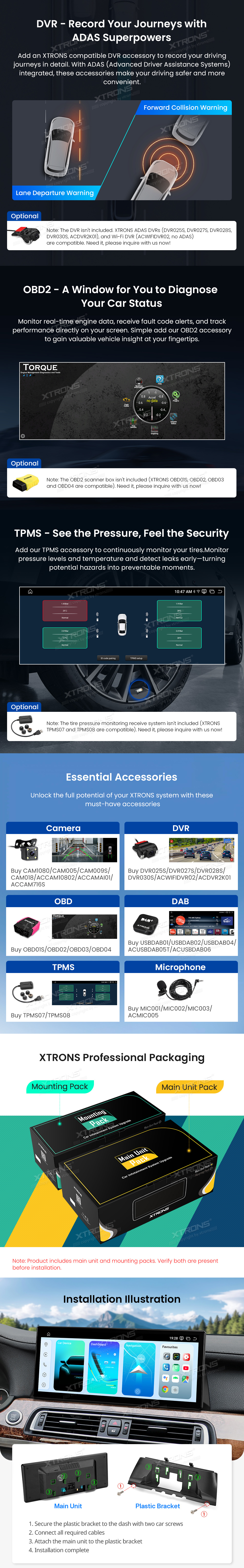 * Wichtiges Zubehör für erweiterte Funktionen, einschließlich Kamera, DAB, DVR, OBD, TPMS
