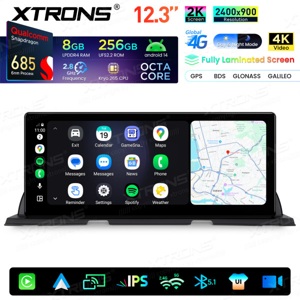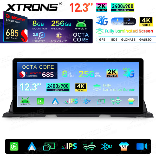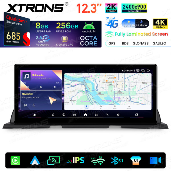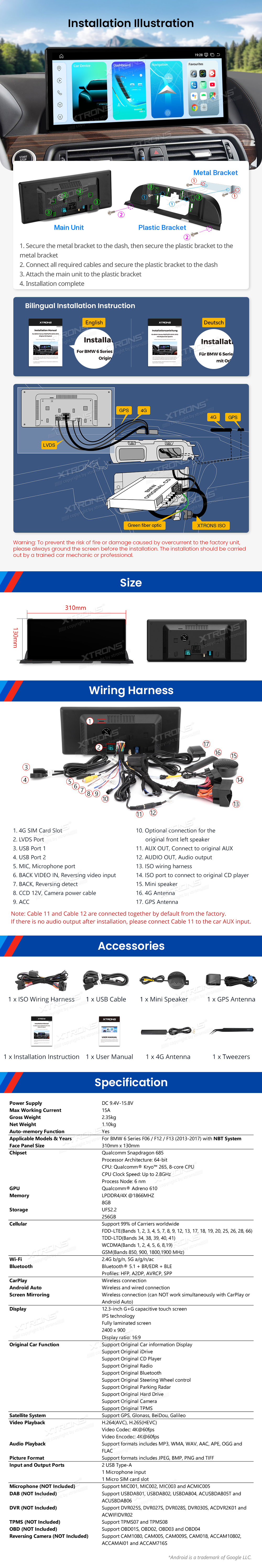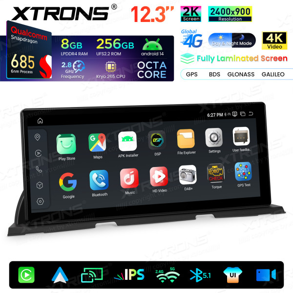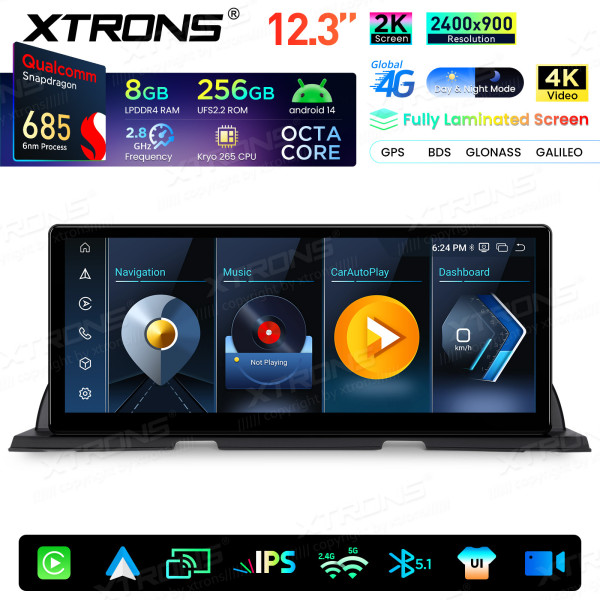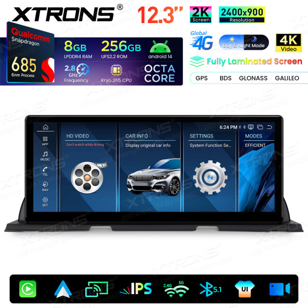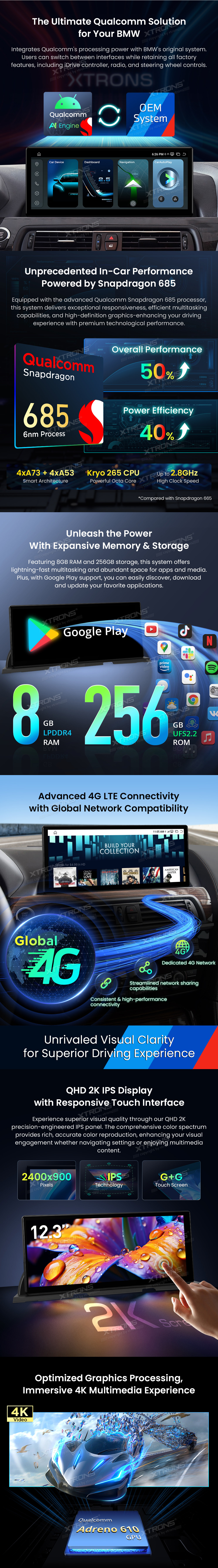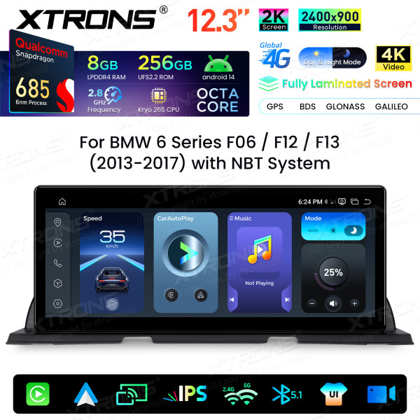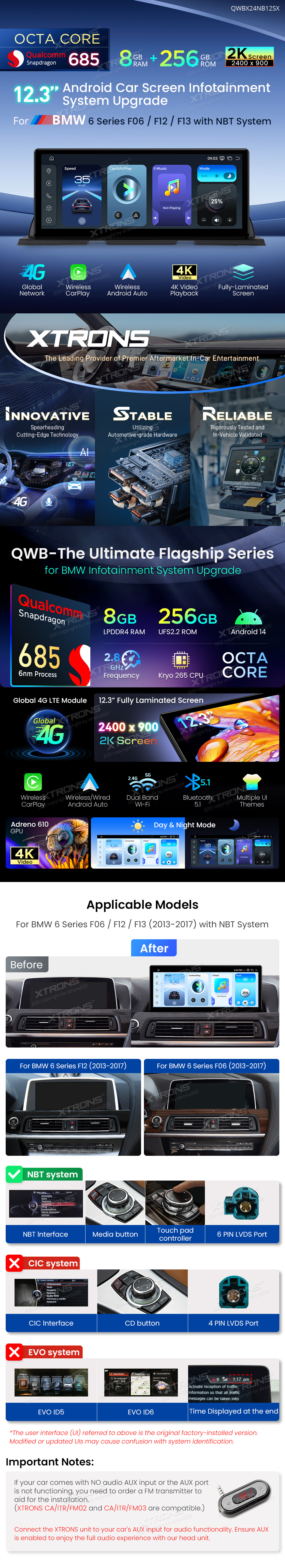 QWBX24NB12SX 12,3 Zoll 2K-Bildschirm Qualcomm Snapdragon 685 8+256 GB Android-Autobildschirm-Upgrade für BMW 6er F06/F12/F13 (2013–2017) NBT-System