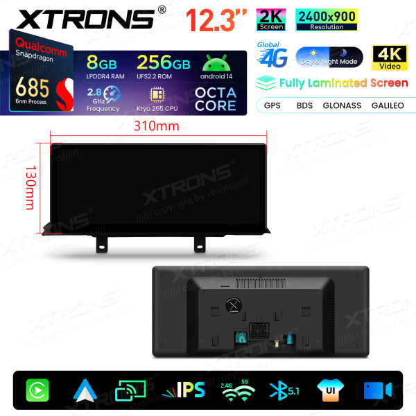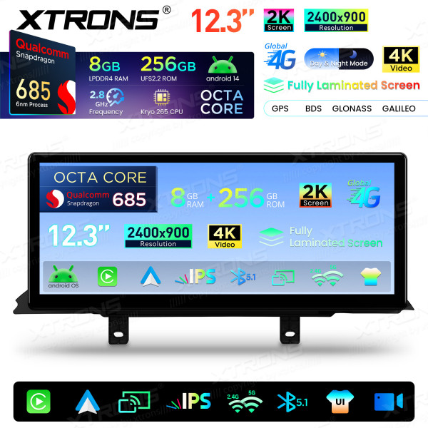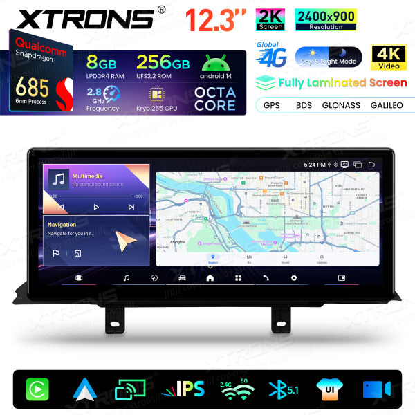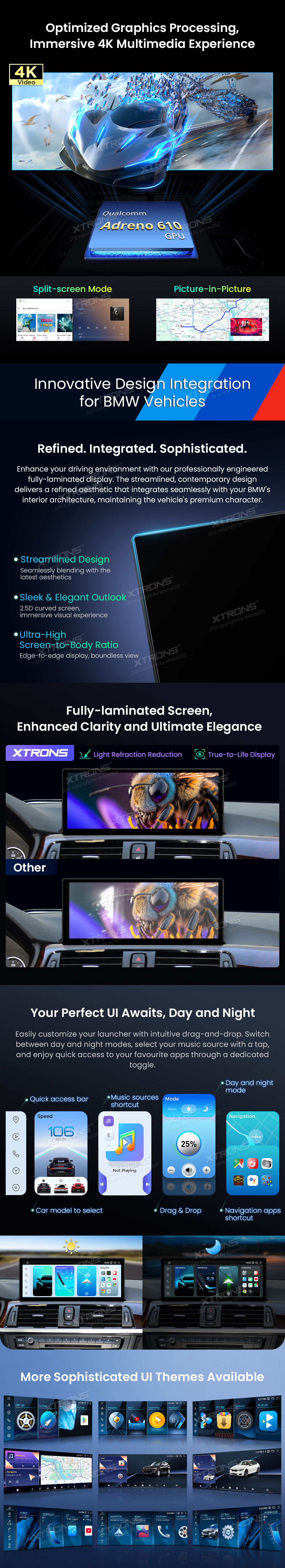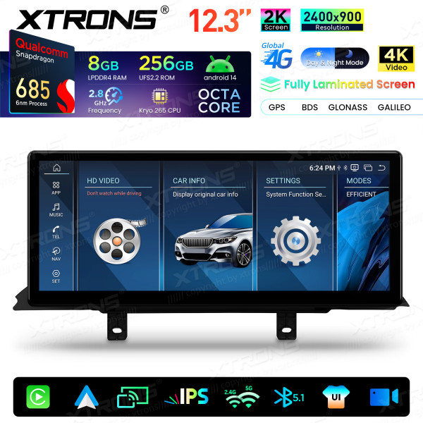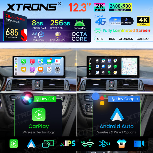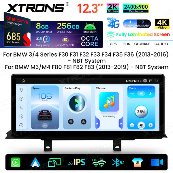 12,3 Zoll 2K Bildschirm Qualcomm Snapdragon 685 8+256GB Android Auto-Bildschirm-Infotainmentsystem Upgrade für BMW 3/4er M3/M4 LHD NBT-System