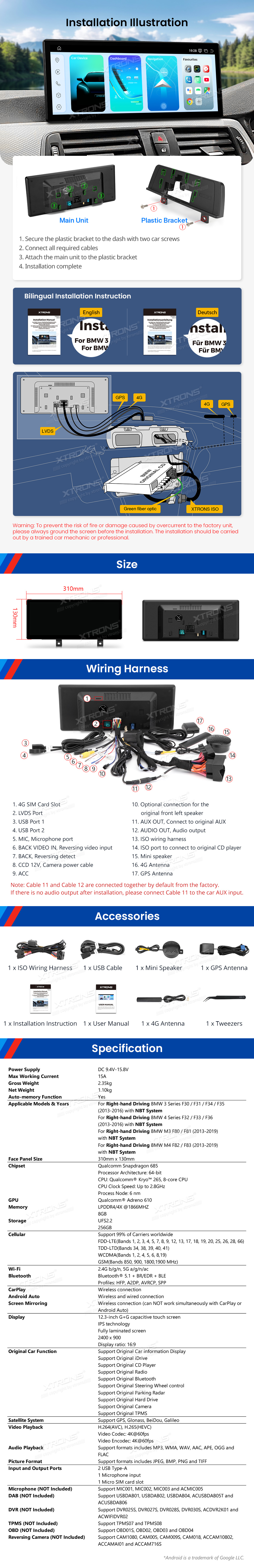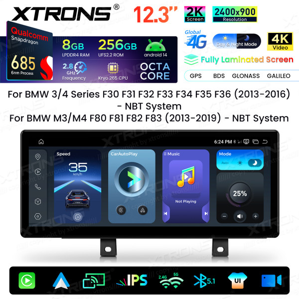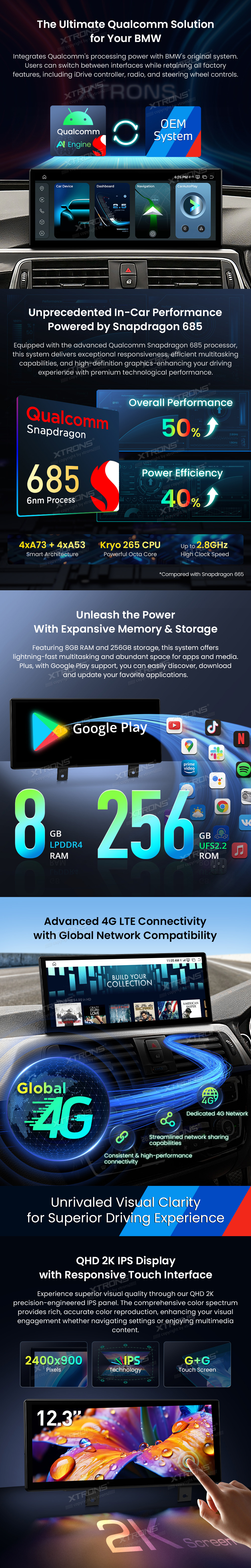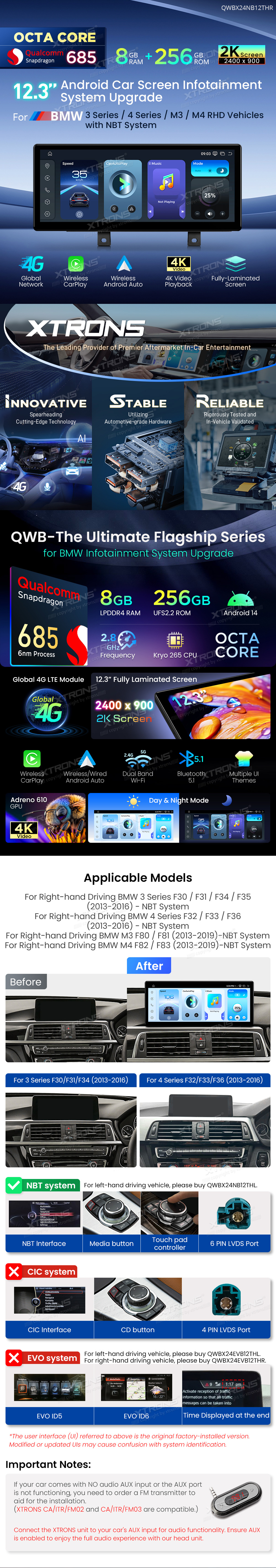 QWBX24NB12THR 12,3-Zoll-2K-Bildschirm Qualcomm Snapdragon 685 8+256GB Android Auto-Bildschirm-Upgrade für Rechtslenker BMW 3er/4er/M3/M4 NBT-System