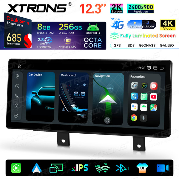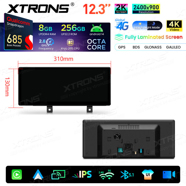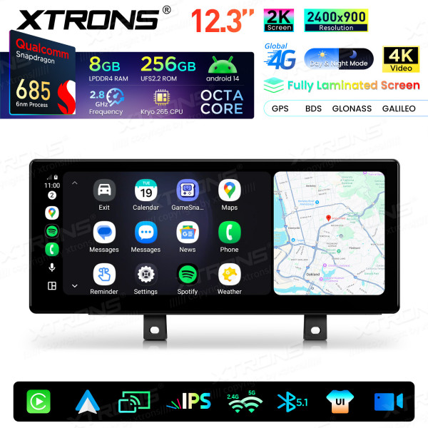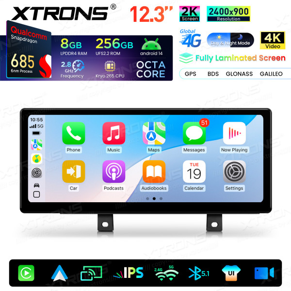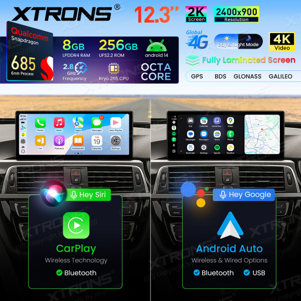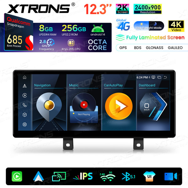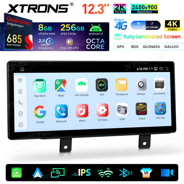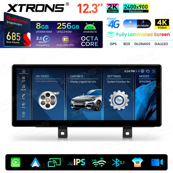 QWBX24NB12THR 12,3-Zoll-2K-Bildschirm Qualcomm Snapdragon 685 8+256GB Android Auto-Bildschirm-Upgrade für Rechtslenker BMW 3er/4er/M3/M4 NBT-System