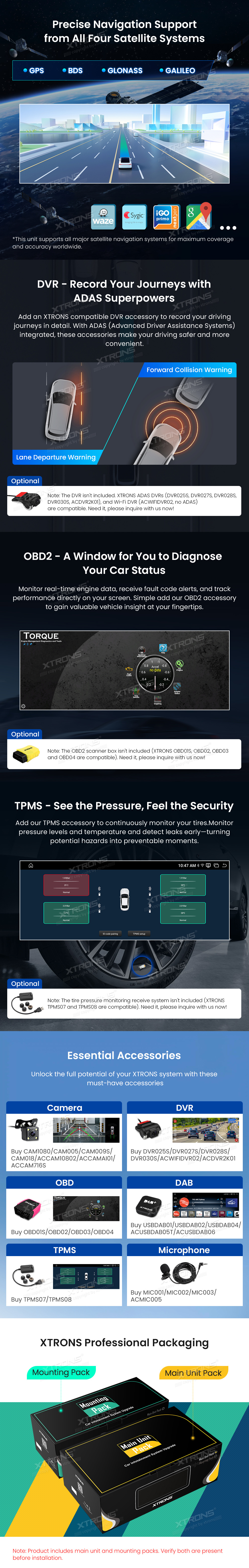 * Wichtiges Zubehör für erweiterte Funktionen, inklusive Kamera, DAB, DVR, OBD und TPMS