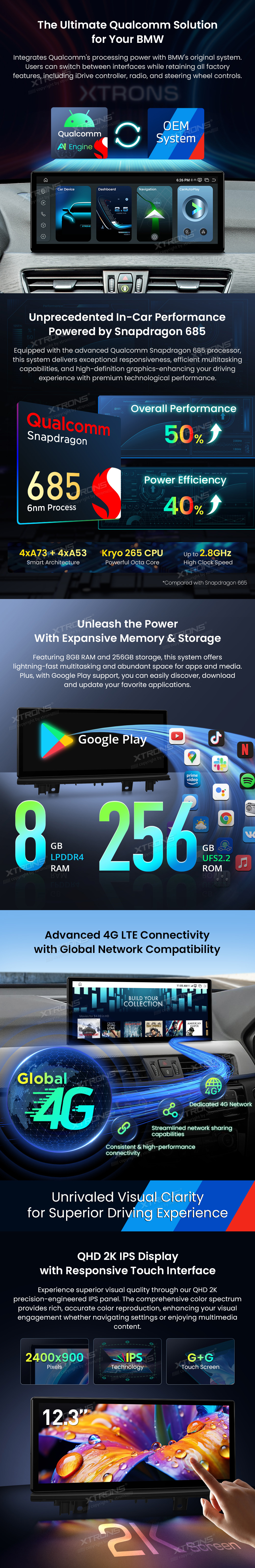 12,3 Zoll 2K-Bildschirm Qualcomm Snapdragon 685 8+256 GB Android-Autobildschirm-Infotainmentsystem-Upgrade für BMW X1 F48 NBT-System
