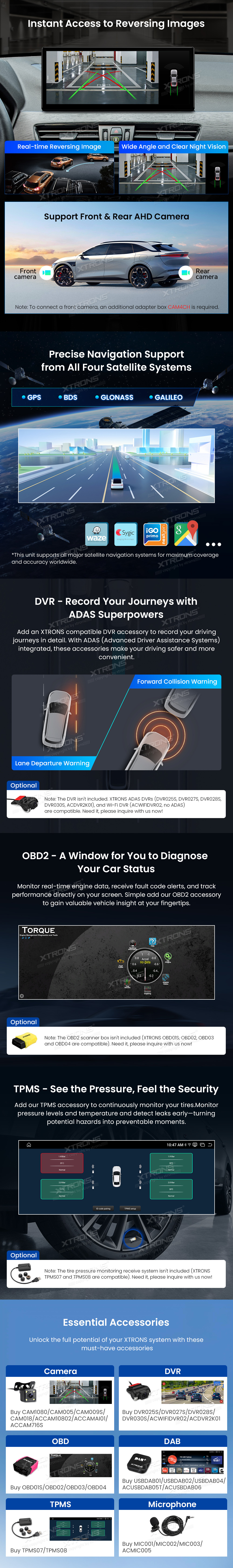 * Wichtiges Zubehör für erweiterte Funktionen, einschließlich Kamera, DAB, DVR, OBD, TPMS