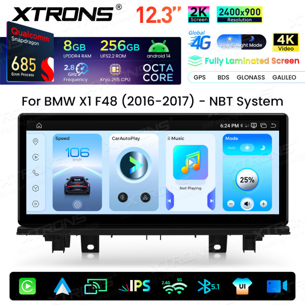 12,3 Zoll 2K-Bildschirm Qualcomm Snapdragon 685 8+256 GB Android-Autobildschirm-Infotainmentsystem-Upgrade für BMW X1 F48 NBT-System