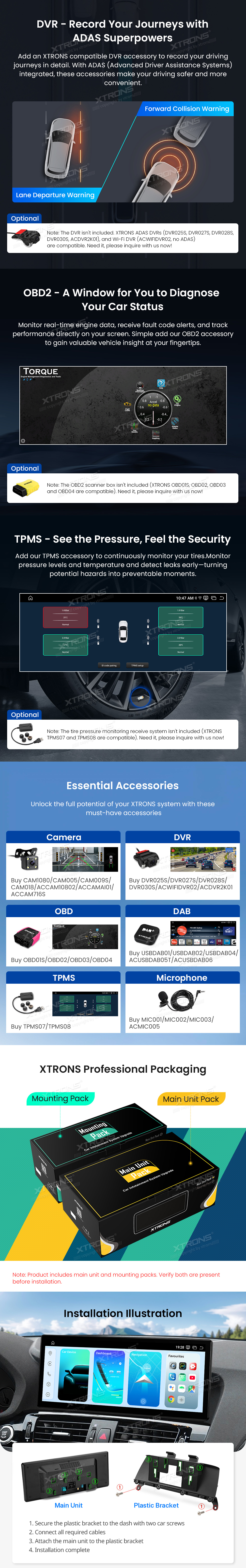 * Wichtiges Zubehör für erweiterte Funktionen, einschließlich Kamera, DAB, DVR, OBD, TPMS