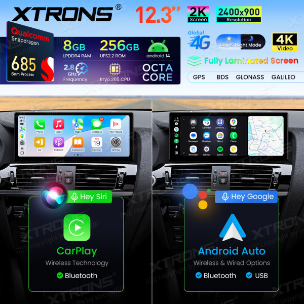 QWBX24NB12X3 12,3 Zoll 2K-Bildschirm Qualcomm Snapdragon 685 8+256 GB Android-Autobildschirm-Upgrade für BMW X3 F25/X4 F26 (2014–2016) NBT-System