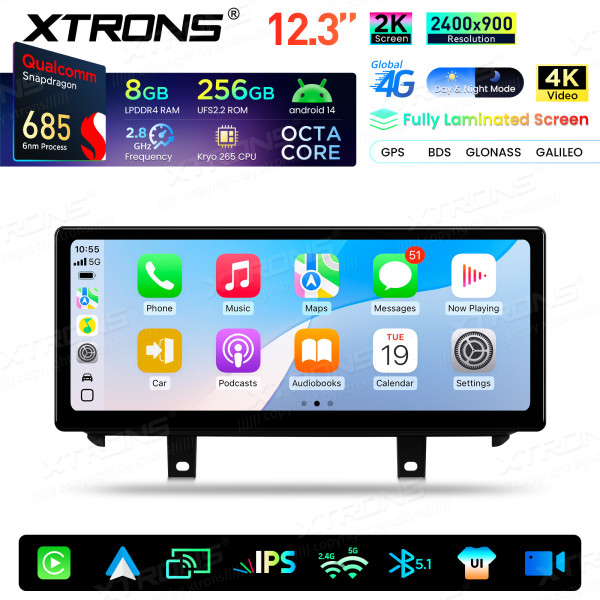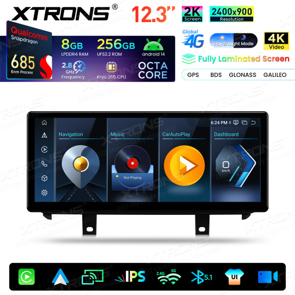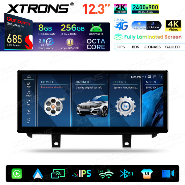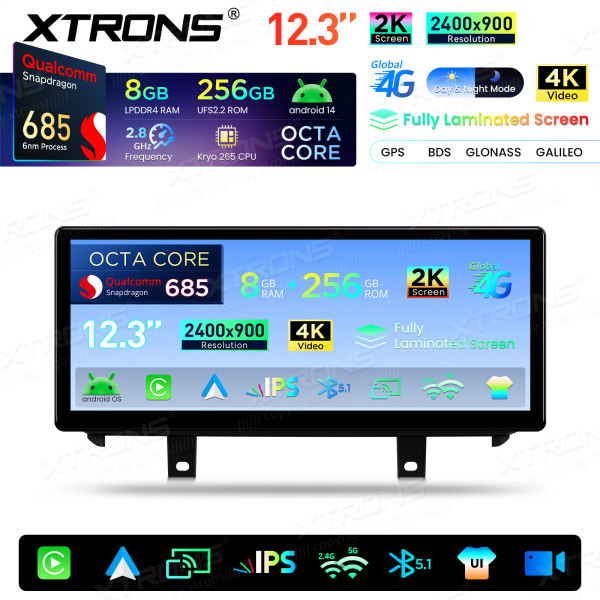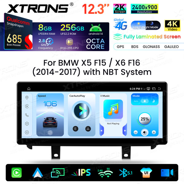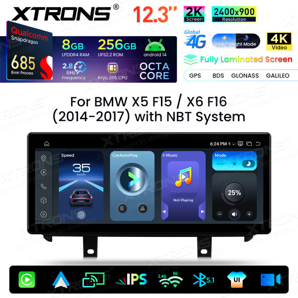 QWBX24NB12X5N 12,3 Zoll 2K-Bildschirm Qualcomm Snapdragon 685 8+256 GB Android-Autobildschirm-Upgrade für BMW X5 F15/X6 F16 (2014–2017) NBT-System
