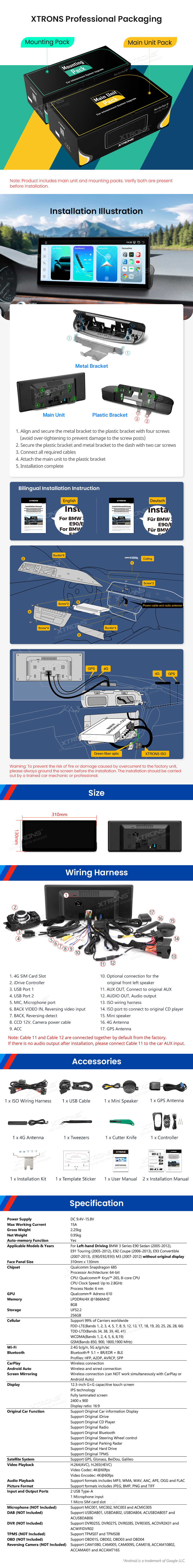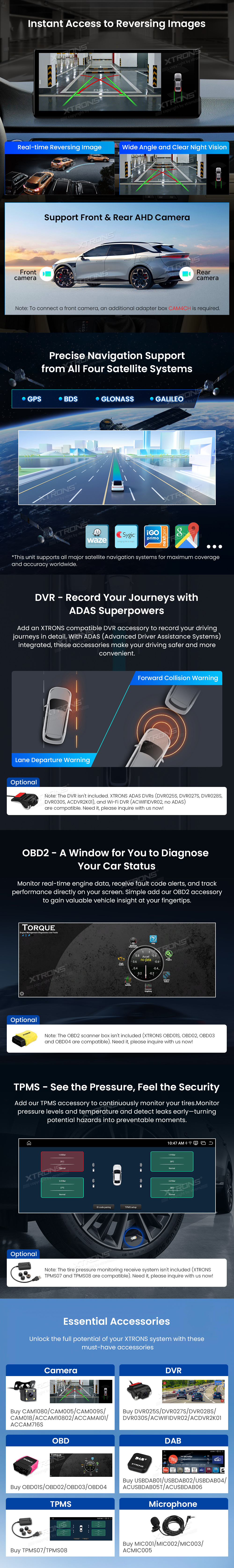 * Wichtiges Zubehör für erweiterte Funktionen, einschließlich Kamera, DAB, DVR, OBD, TPMS