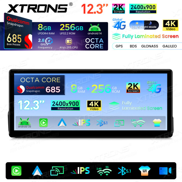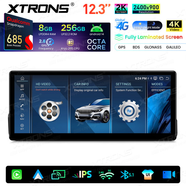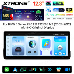 12,3 Zoll 2K-Bildschirm Qualcomm Snapdragon 685 8+256 GB Android-Autobildschirm-Upgrade für BMW 3er E90/E91/E92/E93/M3 LHD Kein Originalsystem