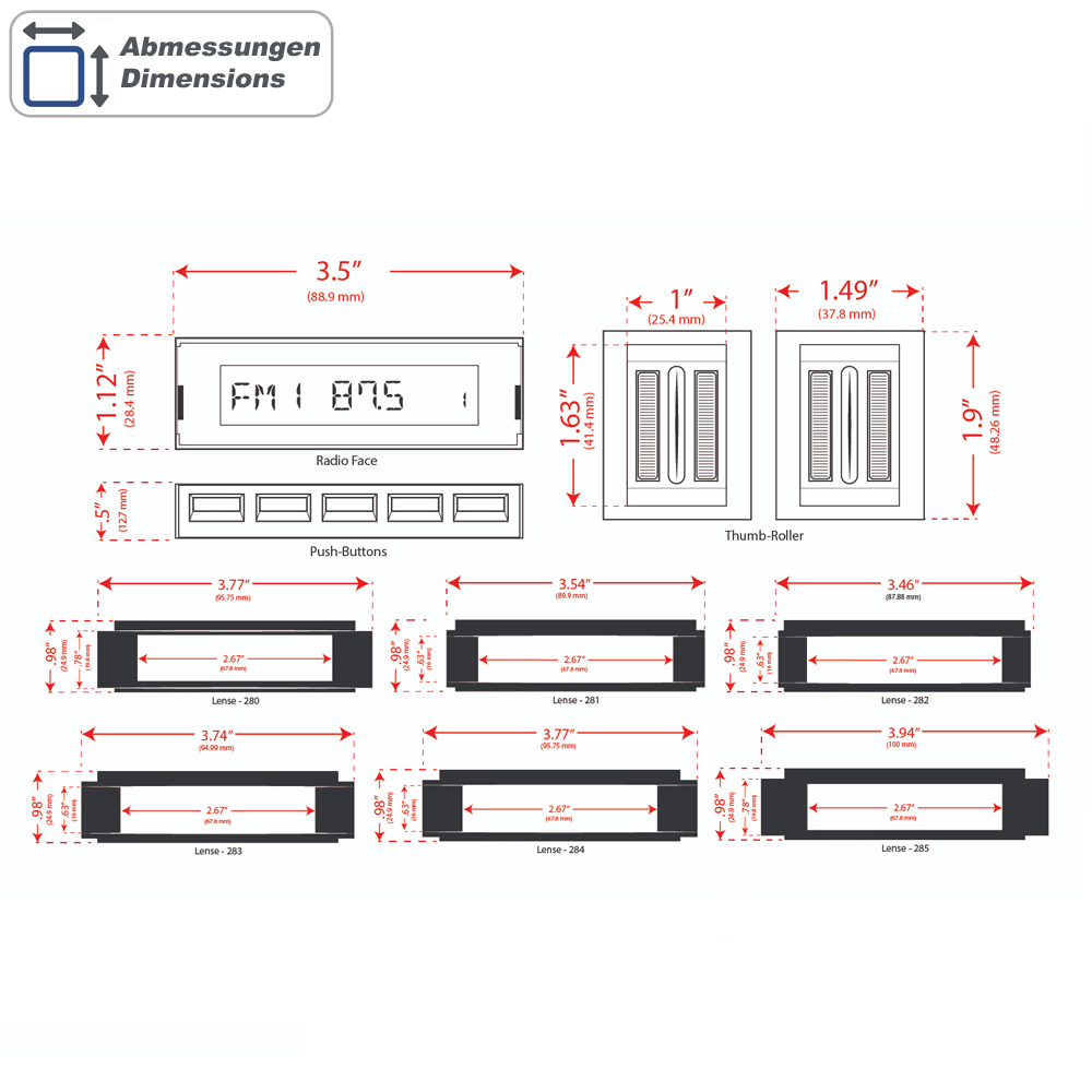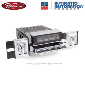 RETROSOUND Displayeinheit „Model Redondo“ kompatibel mit dem Radiomodul MOTOR-1DAB, MOTOR-2DAB und MOTOR-6DAB Abmessungen: 25.4mm x 88,9mm Das RetroSound Autoradio „Model Redondo“ besteht aus mindestens fünf Komponenten und kann in zwei Varianten bestellt werden. BEDIENUNG MIT DREHRAD (Walze) Sie benötigen dafür: – MOTOR-6DAB (Radiomodul) – REDONDO-DIS (Displayeinheit) – REDONDO-T (Bedieneinheit) – PB1 oder PB2 (Tasteneinheit) – RSP-280 bis RSP-285 (Displaylinse) BEDIENUNG MIT DREHKNOPF Sie benötigen dafür: – MOTOR-1/2/6DAB (Radiomodul) – REDONDO-DIS (Displayeinheit) – REDONDO-S (Bedieneinheit) – PB1 oder PB2 (Tasteneinheit) – RSP-280 bis RSP-285 (Displaylinse) HINWEIS ZUM H-KENNZEICHEN Etwaige Bedenken, dass Ihr H-Kennzeichen eventuell durch den Einbau eines RetroSound Autoradios in Gefahr wäre, sind unbegründet. Im Download finden Sie eine Bestätigung mit der Zustimmung des kompletten AKE-Arbeitskreises (TÜV SÜD, TÜV Rheinland, TÜV Nord, Dekra, KÜS, GTÜ) die besagt, dass das „RetroSound Model Zuma“ und das „RetroSound Model Two“ samt fahrzeugspezifischer Blende und Bedienknöpfen in Oldtimer mit H-Kennzeichen installiert werden dürfen bzw. die Vergabe des H-Kennzeichens nicht verhindern!