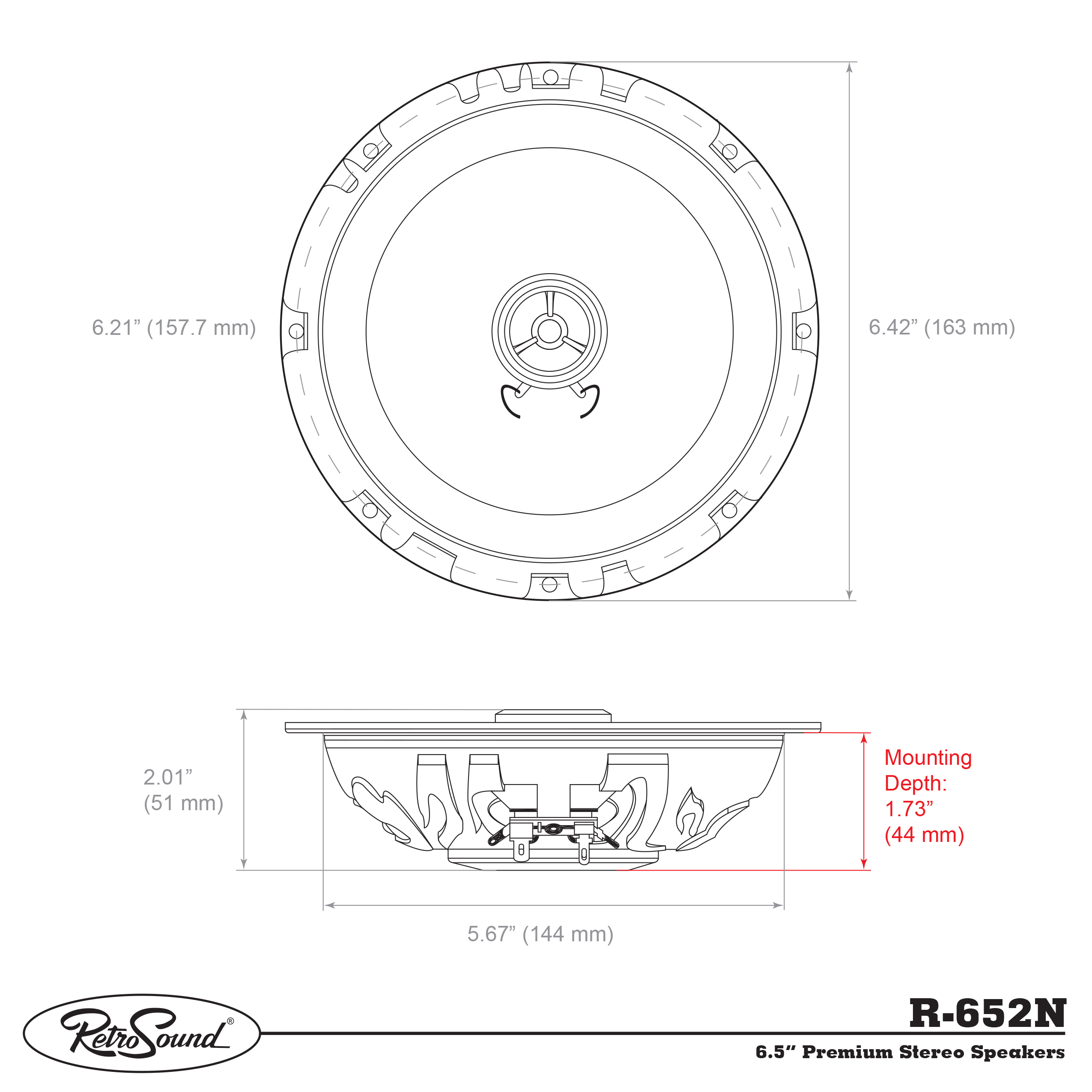 RetroSound gelang es nur durch den Einsatz von Stahlkörben mit ultrateuren Neodymmagneten die Lautsprecher so unglaublich flach in der Einbautiefe herzustellen. In vielen älteren Fahrzeugen können aktuelle Autolautsprecher, wegen der großen Magneten, überhaupt nicht installiert werden. Mit RetroSound Lautsprechern finden Sie für jedes Fahrzeug die perfekte Lösung. TECHNISCHE DATEN: – Nenndurchmesser 6.5“ – Einbautiefe 45mm – Durchmesser 165mm – Impedanz 4 Ohm SVC – Frequenzgang 52-21.000 Hz – Schalldruck 87dB – Sinusbelastbarkeit 50 Watt – Musikbelastbarkeit 100 Watt – Mylar Hochtöner mit Neodymmagnet – Polyproylen Tieftöner mit Neodymmagnet – Santoprene Gummisicke – inklusive schwarzer Schutzgitter – verchromter Stahlkorb WEITERE SUCHBEGRIFFE – R-652N, R652N, r-652n, r652n