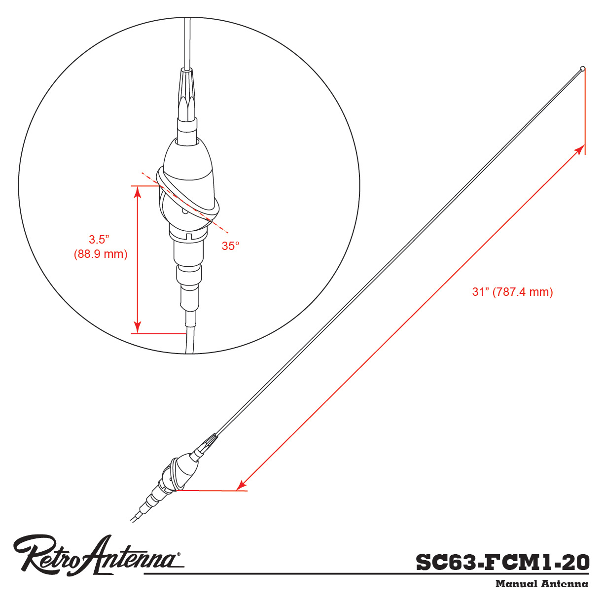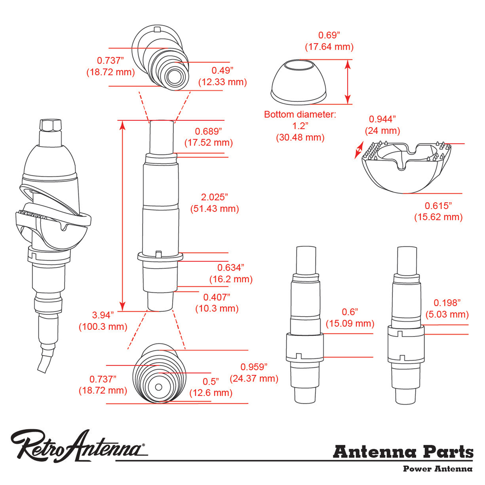 RETROSOUND Teleskopantenne, verchromtes Messing, Heckmontage