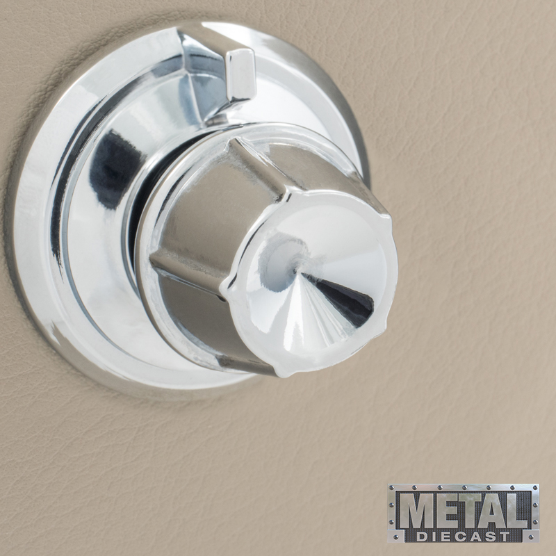 Diese vorderen Metallguss Bedienknöpfe werden paarweise ausgeliefert. Bitte bestellen Sie die hinteren Bedienringe und eine eventuell benötigte Blende bzw. Rahmen separat. Lieferumfang – 2 Bedienknöpfe Material – Metall, verchromt Durchmesser – 25mm Kompatibilität Dieser vordere Bedienknopf ist nur kompatibel mit folgenden Displayeinheiten: Retro, Apache, Detroit, Huntington, Monterey, Redondo RS, Wonderbar. Dieser Bedienknopf kann nicht in Verbindung mit dem Bedienring RSP-071(P), RSP-074(P), RSP-075(P), RSP-080P, RSP-085, RSP-087P, RSP-090P und RSP-098 montiert werden.
