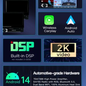 7-Zoll-Carplay Android Auto Universal 1 Din einziehbarer Touchscreen-Auto-Player HD FM AUX-Eingang BT Radio Mirror Link